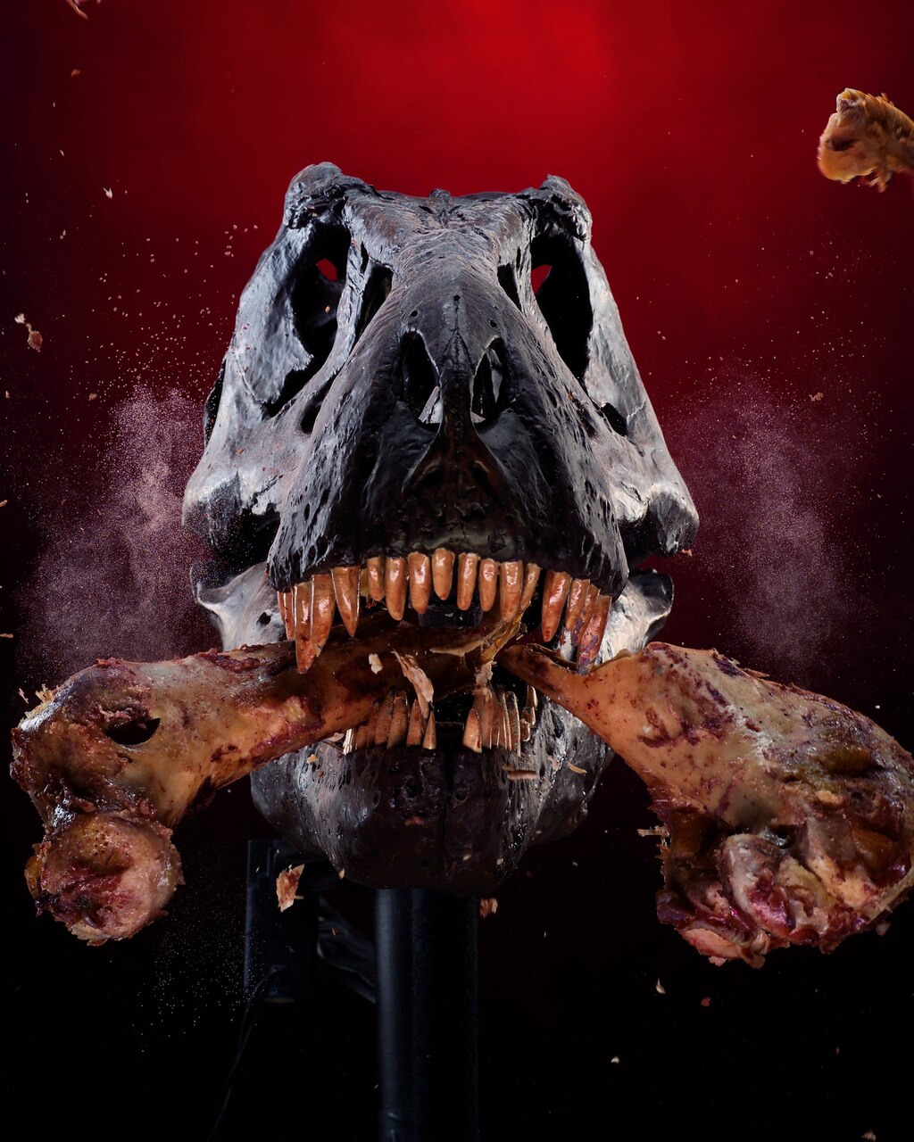 دستان کوچک، هماگونه که جان هورنر اشاره کرد مشکلاتی برای گرفتن شکار ایجاد میکند هرچند که این امر در شکارچی ها فاقد پیشینه نیست. اینجاست که جمجمه بزرگ و قوی تیرانوسورس وارد نقش اصلی اش میشود. مارها یک شکارچی زمینی بی دست هستند، درحالی که در نزدیک ترین خویشاوندان آرکوسوری (Archosour) تیرانوسور ها یعنی کروکودیلها دست غالب در حین پاره کردن شکار نقش کمی داشته یا فاقد عمل میباشد.